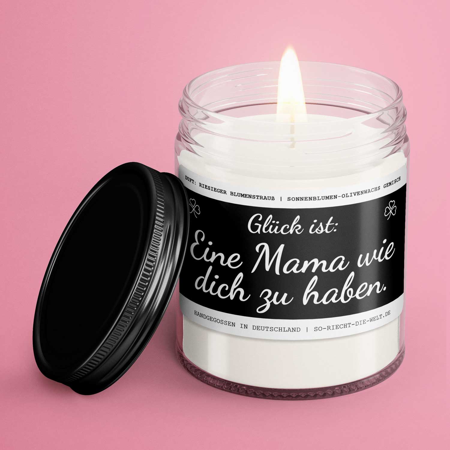 Mama Duftkerze "Glück ist, eine Mama wie dich zu haben." Duft: riesiger Blumenstrauß