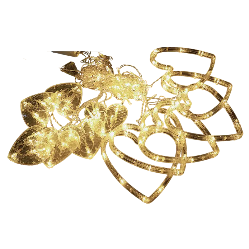 Whether for a romantic evening indoors or to add a charming touch to your outdoor gatherings, our Heart-Shaped LED Curtain String Lights are sure to infuse warmth, love, and an enchanting glow into any setting.