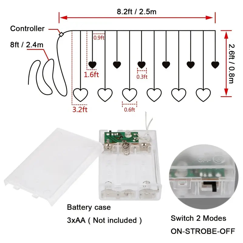 - Dazzling Design: Heart-shaped LED lights with 138 LEDs in total, including 12 heart pendants.